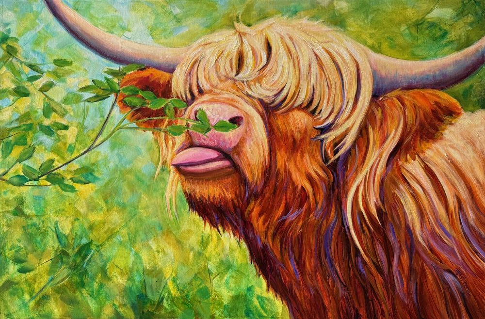 Isabel loves bringing joy into other people’s lives through her colourful animal paintings. She is known for her ability to express the unique and sometimes quirky personalities in animals, both domestic and wild. Isabel has learned various art techniques and methods through experimentation, working with other members of the local arts community and taking a variety of classes and workshops. Most of her work is in acrylic and mixed media. Isabel sells her work privately and through local shows.
