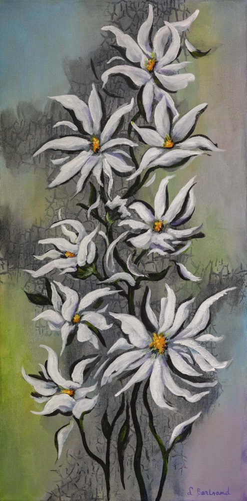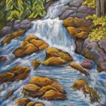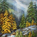 It wasn’t until Linda retired from teaching that she decided to pursue the world of painting for herself. Living in Calgary and near the foothills has provided her with a wide range of subject matter to inspire compositions. Initially, her works mainly focused on flowers, landscapes and trees. More recently, she has included animals and buildings/structures in her repertoire of themes. However, trees remain her most passionate theme. She often experiments with back lighting effects to achieve depth and a three-dimensional feeling in her work. Her niche is in colour and texture.